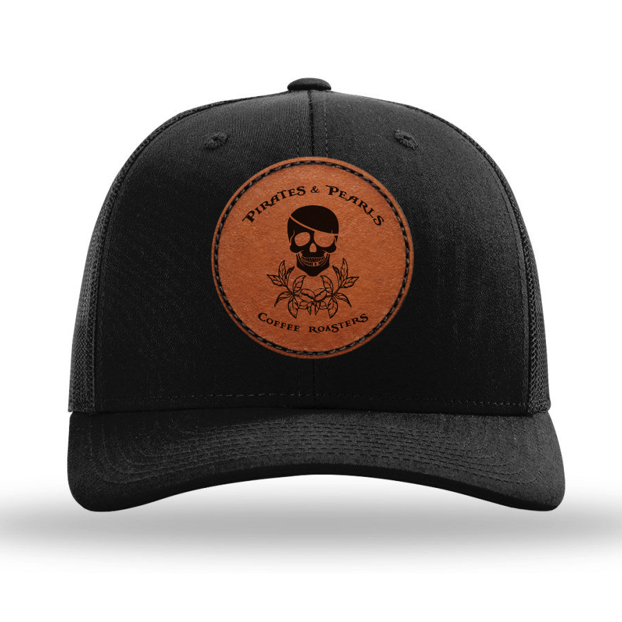 Dive into a world of rugged sophistication with our premium black Richardson trucker cap adorned with our signature Pirates and Pearls leather patch. Crafted for adventurers and trendsetters alike, these caps seamlessly blend style and durability. Whether you're setting sail on the high seas or strolling the urban jungle, our Leather Patch Trucker Cap is the perfect accessory to showcase your unique personality. Join the Pirates and Pearls community and make a bold statement with our iconic leather patch cap today!