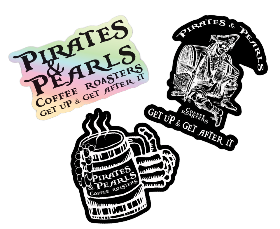 The Pirates and Pearls sticker pack includes three of our most treasured 3-inch stickers. 🏴☠️ GET UP & GET AFTER IT!