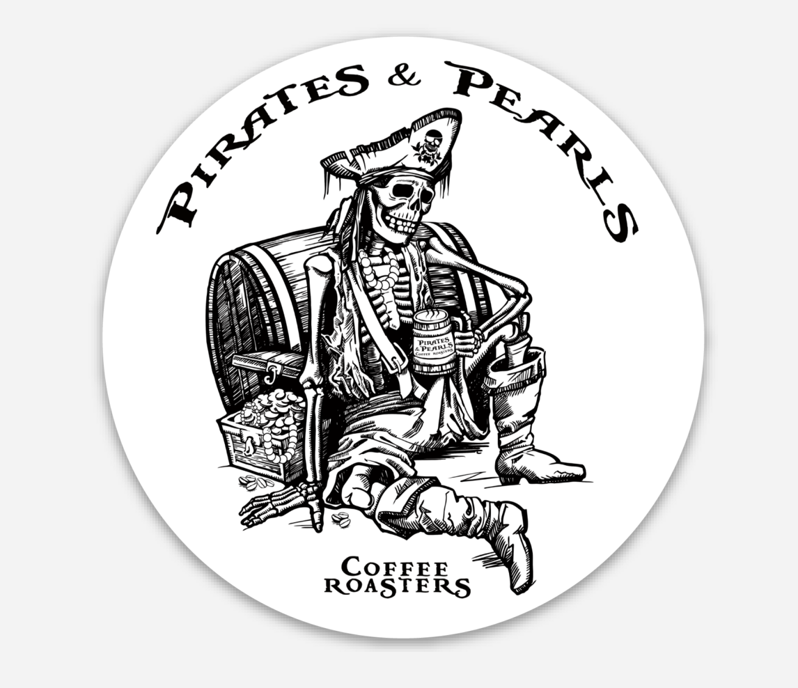 Show your love for Pirates and Pearls Coffee Roasters with our 3-inch round sticker.