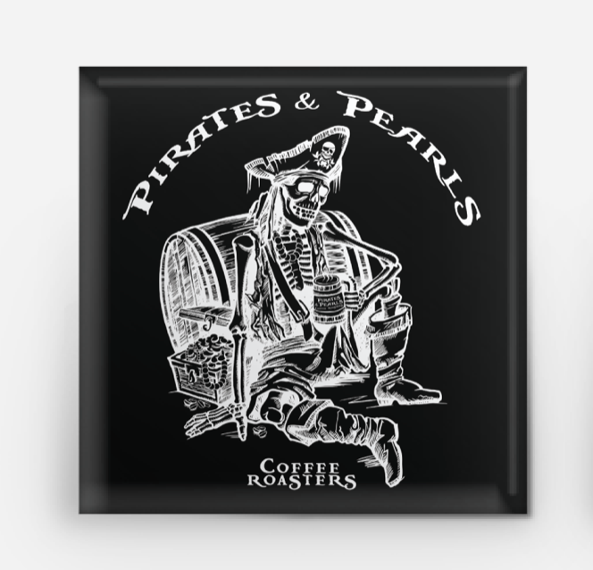 Add a little touch of Pirates & Pearls to your wardrobe with our 1.5" square button.